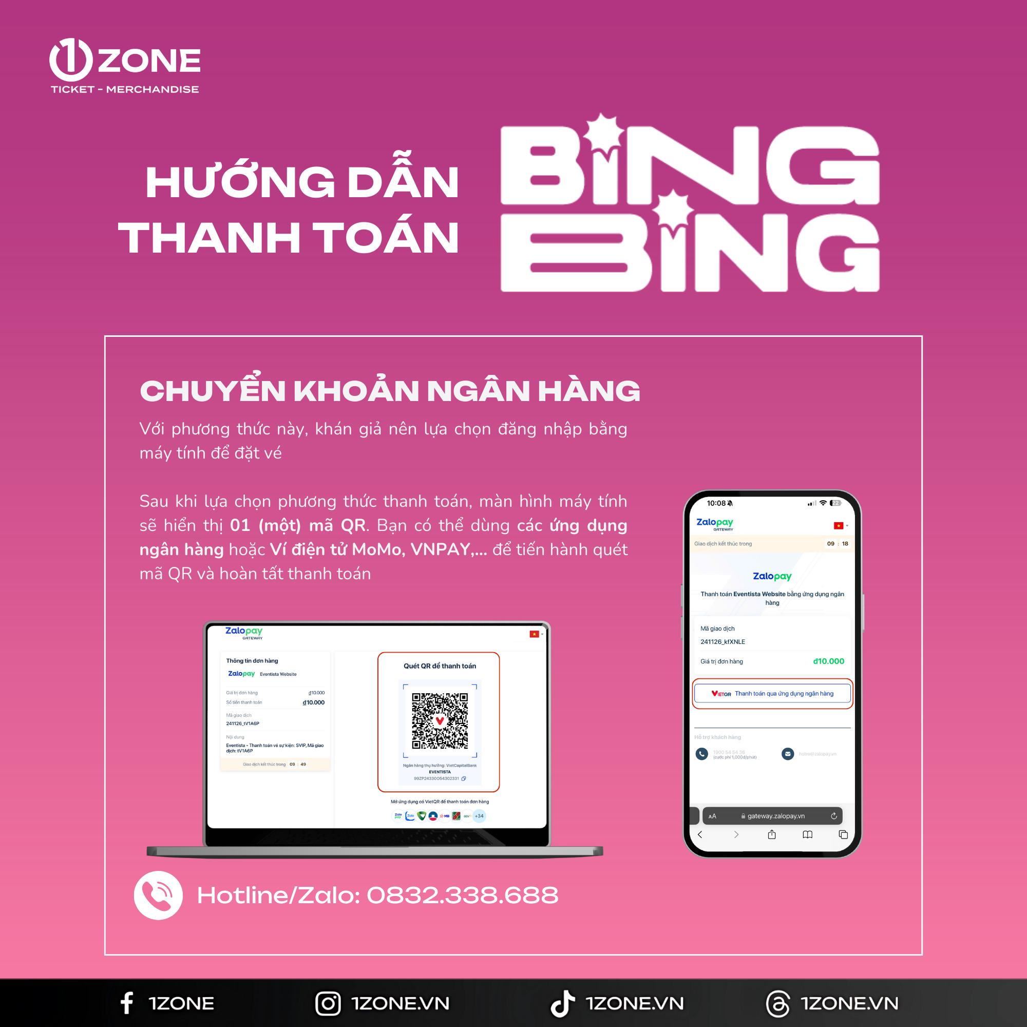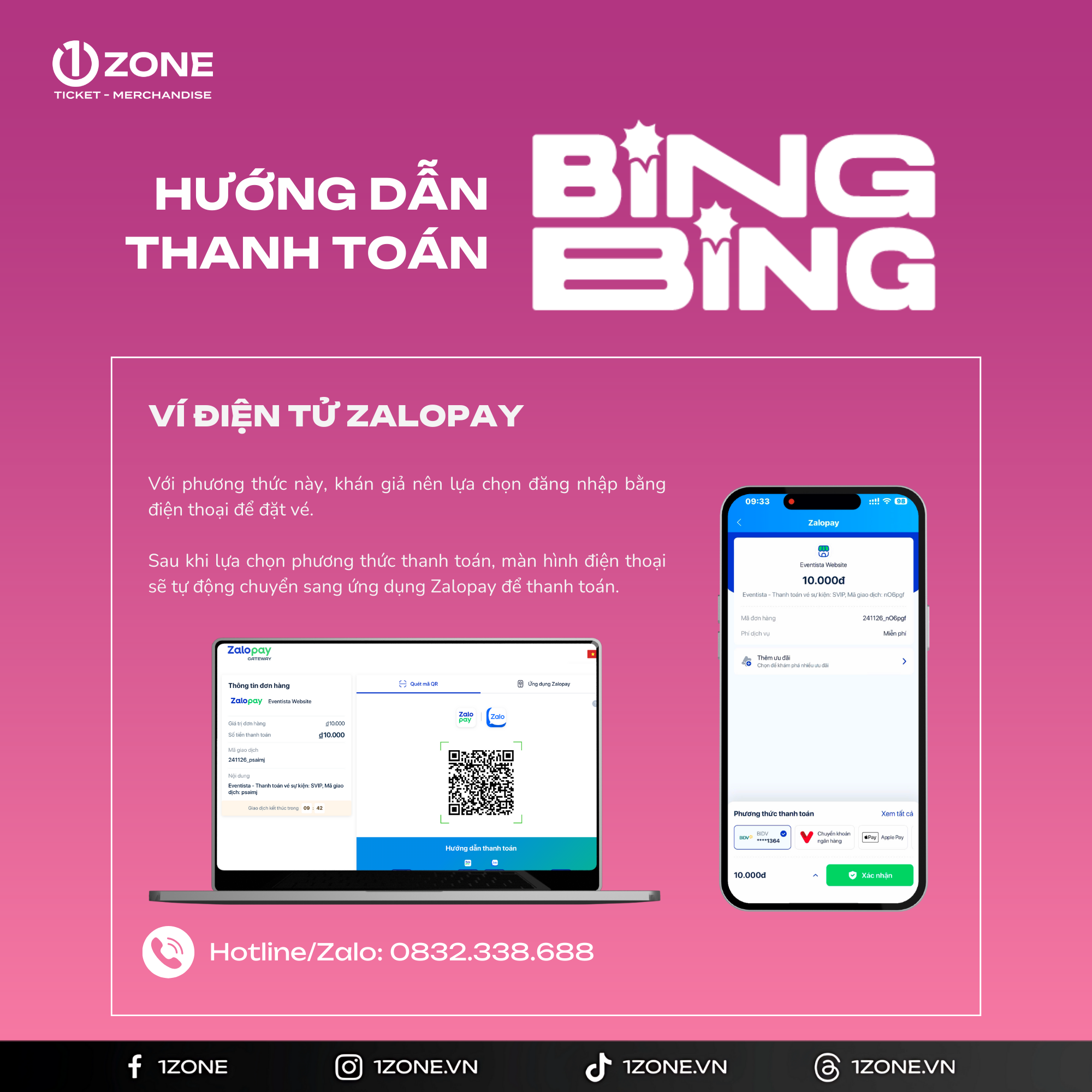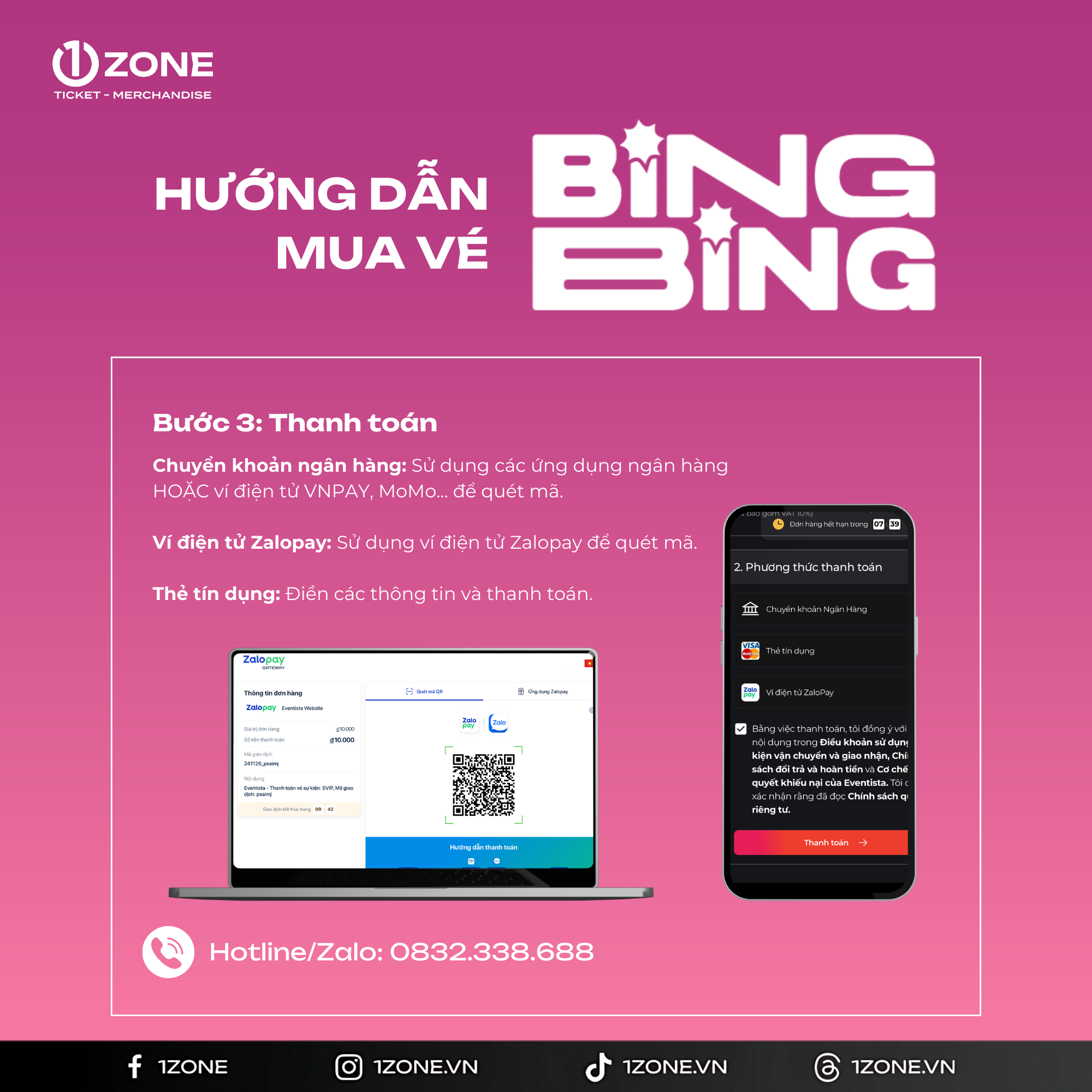 Bao gồm: Vòng tay check-in; BING Cup; Stickers; Keyrings (Early Bird Exclusive); F&B Service (1 drink ticket); Khách được tự do di chuyển trong không gian